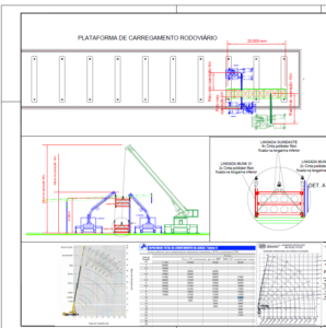 Foi desenvolvido um plano de rigging específico para as condições do terreno, prevendo a utilização coordenada de múltiplos equipamentos de menor porte, incluindo caminhões com guindaste articulado (tipo munck) e guindaste auxiliar.